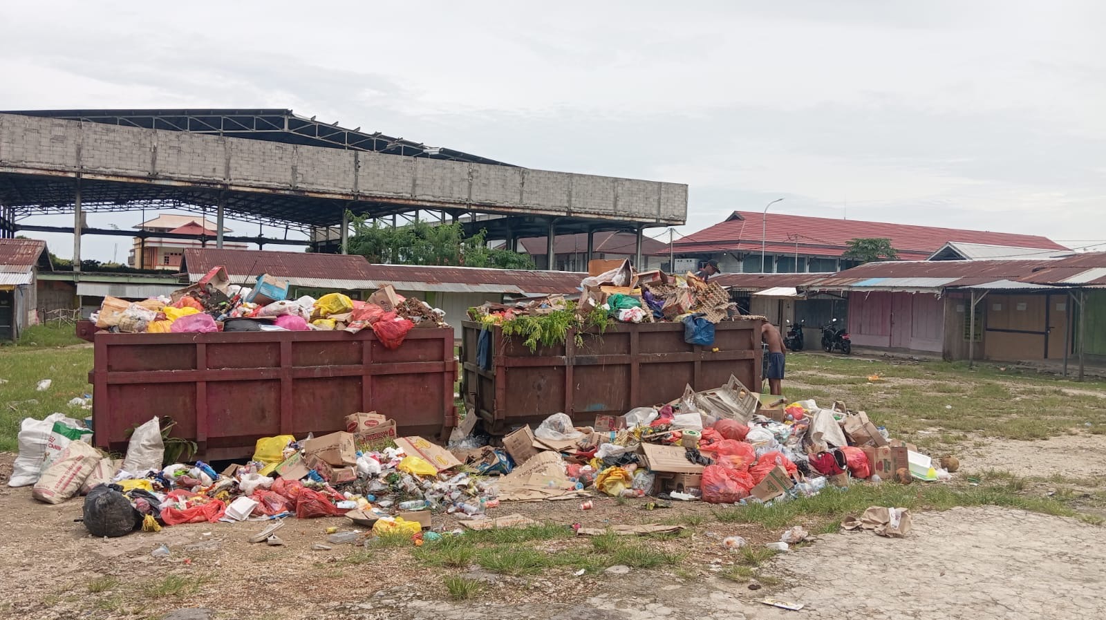 Sampah kini semakin menggunung di areal Jalan keluar Pasar Langgur, Malra.