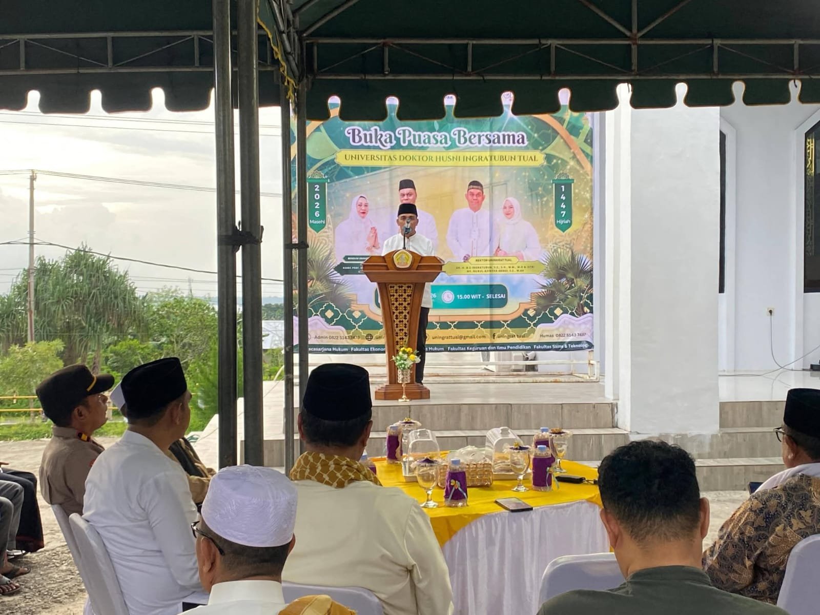 TUAL, JEMDELAMALUKU.COM – Wakil Wali Kota Tual Amir Rumra, mewakili Wali kota Akhmad Yani Renuat menghadiri kegiatan buka puasa bersama, keluarga besar Civitas Akademika Universitas Doktor Husni Inggratubun (Uningrat) Tual pada hari ini, Selasa (3/3/2026).