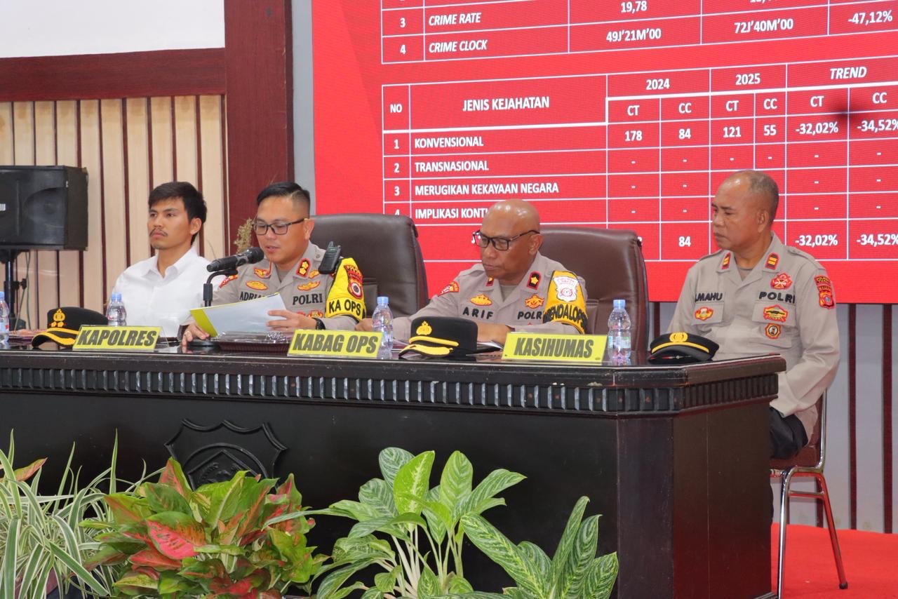 “Angka Kriminal Di Kota Tual Tahun 2025 mengalami penurunan menjadi 121 kasus atau 32,02 Persen dibandingkan tahun 2024 yakni sebanyak 178 Kasus,” ungkapnya. Rabu (31/12/2025).