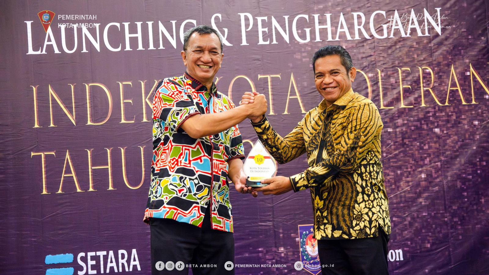 Kota Ambon berhasil menduduki peringkat ke 10 Indeks Kota Toleran (IKT) Tahun 2025 dengan Skor 5,657 berdasarkan penilaian SETARA Institute yang diluncurkan Rabu (22/4/26) di Mangkuluhur Arthotel Suites, Jakarta.