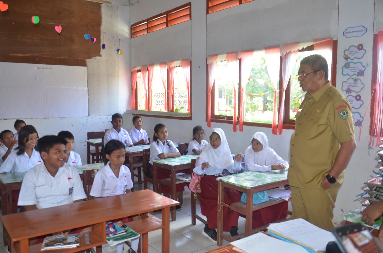 Pantauan, media ini Bupati Malra didampingi Kepala Dinas Kesehatan dan Pendidikan meninjau satu per satu kelas.